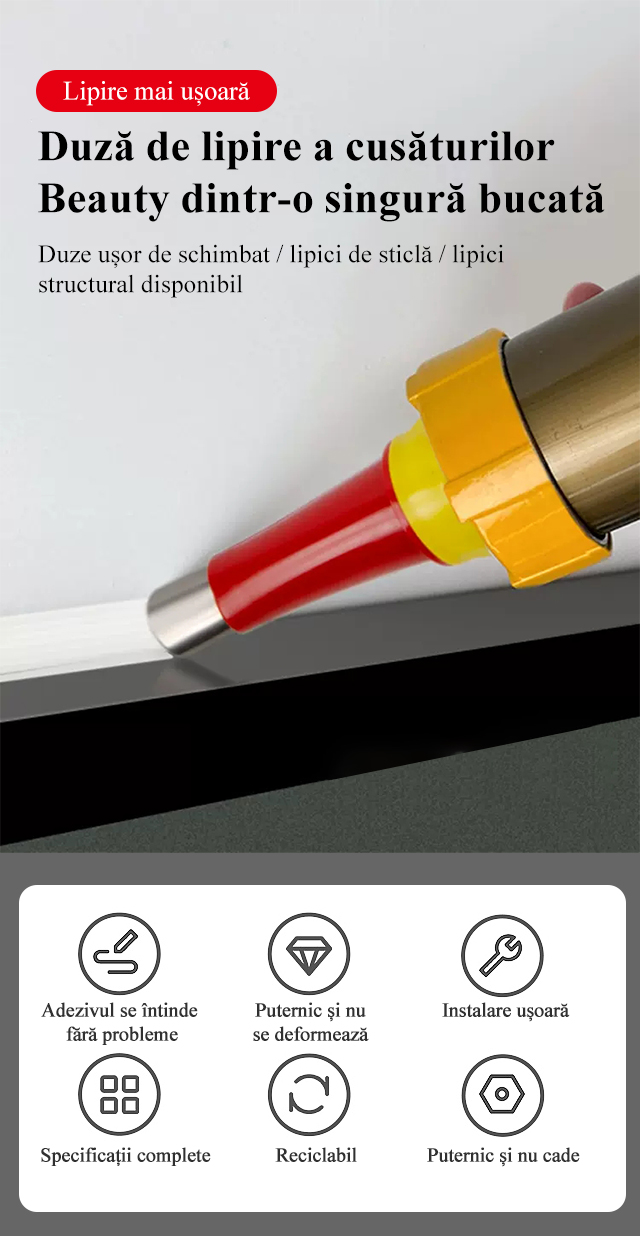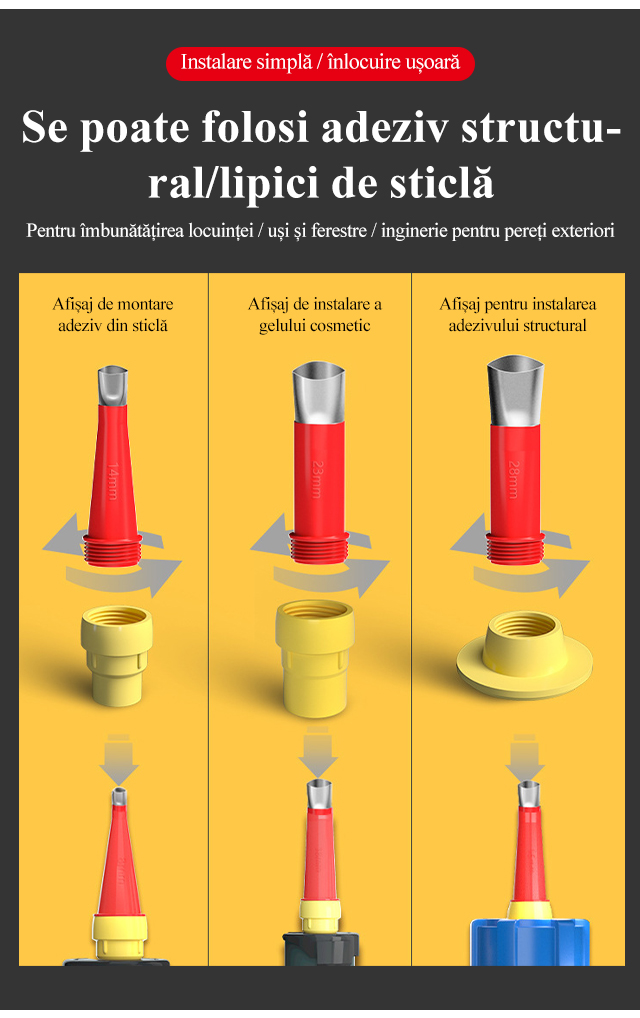 Vârf de pistol de silicon cu structură din oțel inoxidabil (Romanian)