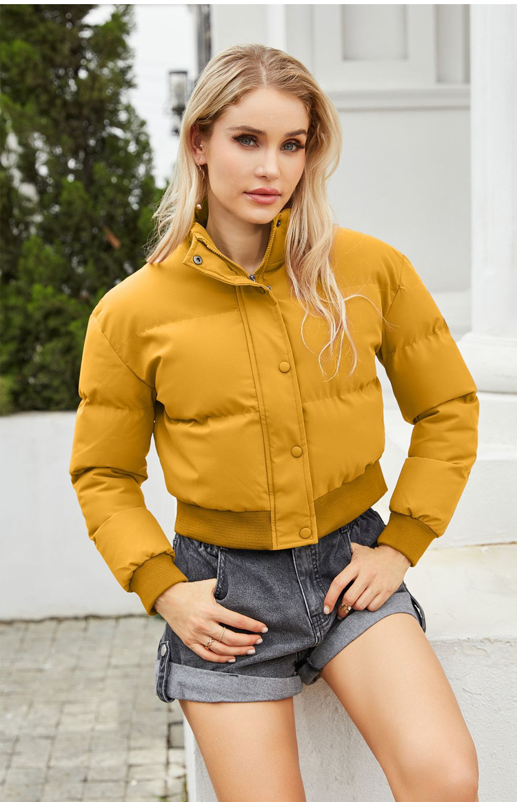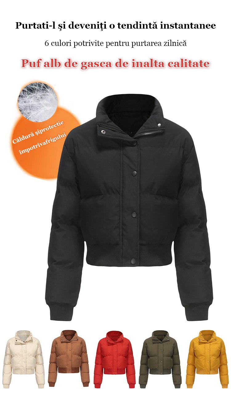 Palton scurt de puf alb de gâscă cu guler înalt